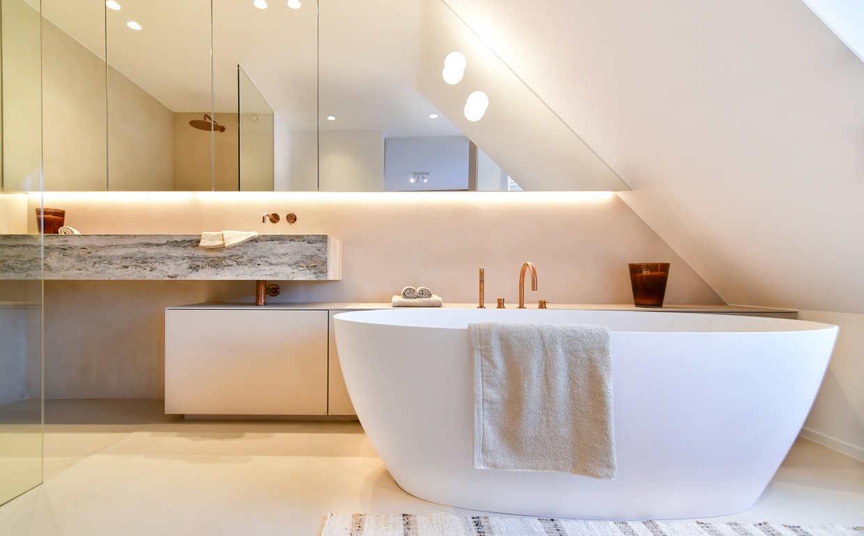 Heerlijk toch hoe het resultaat er telkens gewoon staat! Ook hier waren we er van bij het begin bij. Samen met de investeerder bekeken we hoe en met welke interieurstukken dit pand tot in de puntjes aangekleed kan worden. Deze klant houdt van eenvoud, geen tirlantijntjes maar stijlvolle strakke details, dus hier houden we zeker rekening mee. Een eigen touch maakt ook dat je onderscheid maakt ten opzichte van andere projecten die op dat moment op de markt te koop staan.