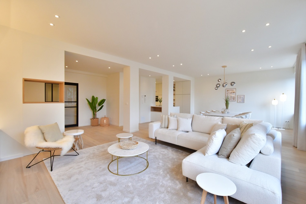 Grenzend aan Ter Kameren Bos, op een boogscheut van hartje Brussel mochten we dit prachtig en zeer ruim appartement inrichten.
