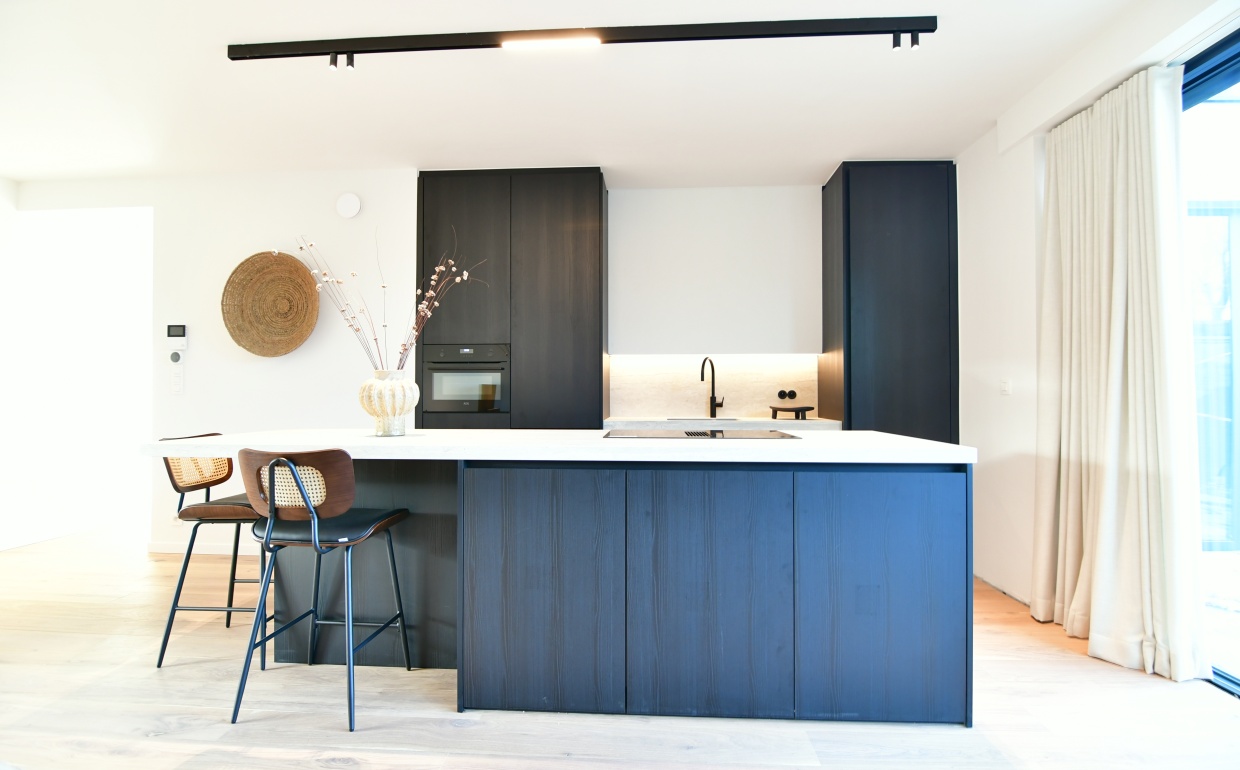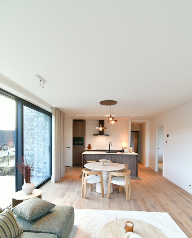 Door een doordacht kleur- en materiaalenpalet te combineren met tijdloze meubels en verfijnde decoratie, ontstond een woonsfeer die luxe uitstraalt én warm aanvoelt. Het resultaat: modelappartementen die de belofte van het project waarmaken en kopers inspireren.